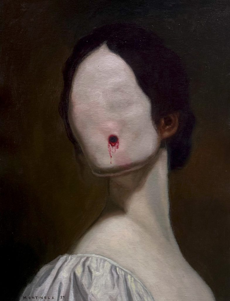 ジェイソン・モンティノラは、古典的な視覚的影響と、神秘的でどこか不気味さを感じさせるイメージとを組み合わせた作品を制作する。古典芸術、精神性への好奇心、そして鮮明な内的世界で形成された背景を用いて、彼は、神話の世界のキャラクターたちが姿を現しているかのような肖像画を描く。彼が描く人物たちは、深い意識への扉を開き、隠された現実を暴き出し、見えるものと感じるものの境界線を問いただす。